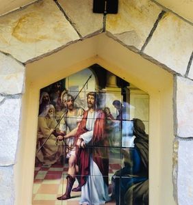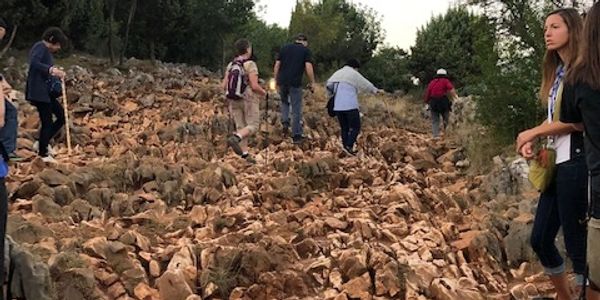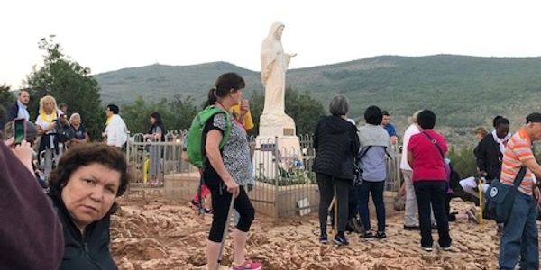 Our last day in Medjugorje. Doing Stations of the cross at St. James Church.
