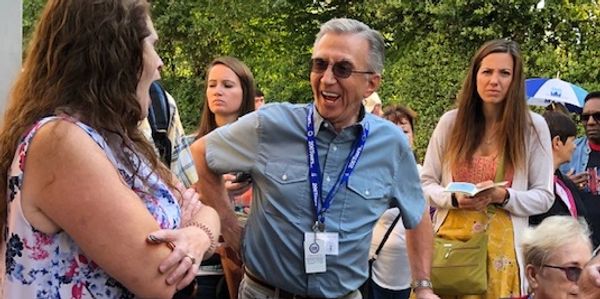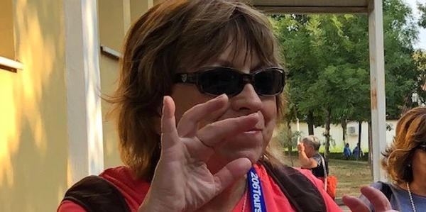 Pilgrim Eileen conversing in Croatian.